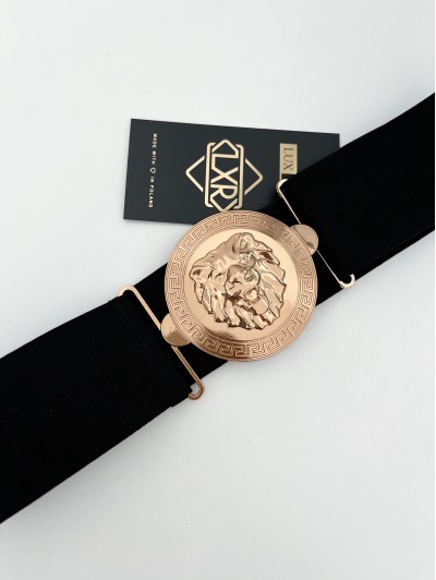 Czarny pasek damski ze złotą klamrą. Ten ozdobny dodatek doskonale sprawdzi się jako uzupełnienie niejednego looku – czy to na imprezę, czy to na randkę. Wyróżnia się pięknym zdobieniem i skupieniem na detalu. Pasek możesz dobrać do rozkloszowanej sukienki czy dopasowanej spódniczki. Idealnie sprawdzi się na każdą okazje.