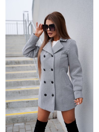 Ponadczasowy, klasyczny płaszcz damski o dopasowanym kroju. Płaszcz ten został wykonany z dbałością o najdrobniejsze szczegóły, reprezentując doskonałość polskiej produkcji. Model zapinany na dwa rzędy guzików zapewnia  nienaganny wygląd i profesjonalny wizerunek. Miękki i przyjemny w dotyku materiał dostarczy niezwykłego komfortu noszenia. Taliowany  fason w połączeniu z dwurzędowymi guzikami w złotym kolorze wygląda bardzo gustownie i kobieco. Nadaje sylwetce idealnych kształtów, a delikatne zakładki na rękawie zwieńczone mankietem dodają nutę nowoczesności i wyrafinowania. Płaszcz Florencja jest od spodu wykończony podszewką, która zwiększa komfort noszenia. Dwie kieszenie idealnie dopełniają elegancką stylizację. Gustowny kołnierz podkreśla i optycznie wydłuża szyję. Płaszcz Florencja to model na który warto postawić wiosną, latem i jesienią. Nieodłączny element garderoby każdej nowoczesnej kobiety. Ekskluzywny model można zestawić z ołówkową spódnicą, spodniami, spodenkami jak również nosić do jeansów. idealnie komponuje się ze szpilkami, sneakersami czy trampkami. Płaszcz można nosić również jako marynarkę czy sukienkę.