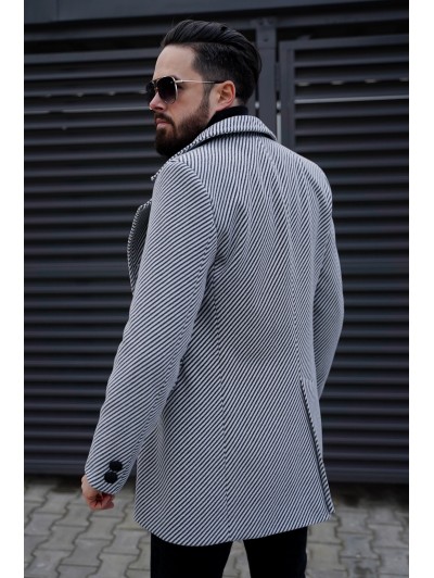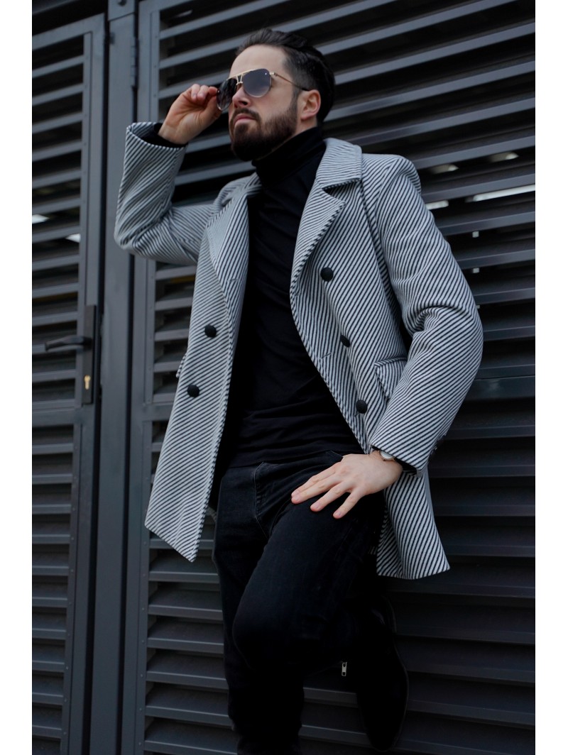 uniwersalnych modeli. Nawiązuje on charakterem do dyplomatki. Płaszcz dwurzędowy LYON w prążek spodoba ci się niezależnie od tego, czy na co dzień nosisz garnitur, czy sweter. Jest on lekki i idealnie sprawdzi się jako okrycie na wiosnę i jesień. Wzór w prążek doskonale wpisuje się w mode
