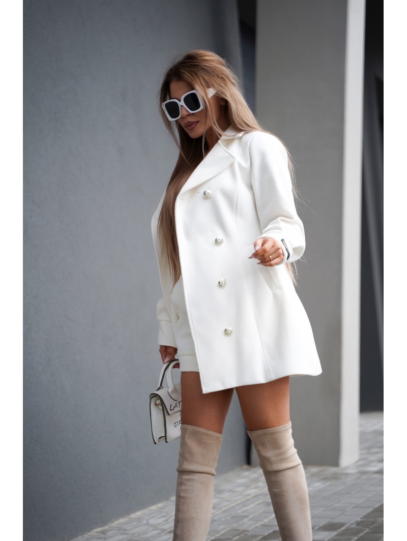 Ponadczasowy, klasyczny płaszcz damski o dopasowanym kroju. Płaszcz ten został wykonany z dbałością o najdrobniejsze szczegóły, reprezentując doskonałość polskiej produkcji. Model zapinany na dwa rzędy guzików zapewnia nienaganny wygląd i profesjonalny wizerunek. Miękki i przyjemny w dotyku materiał dostarczy niezwykłego komfortu noszenia. Taliowany fason w połączeniu z dwurzędowymi guzikami w złotym kolorze wygląda bardzo gustownie i kobieco. Nadaje sylwetce idealnych kształtów, a delikatne zakładki na rękawie zwieńczone mankietem dodają nutę nowoczesności i wyrafinowania. Płaszcz Florencja jest od spodu wykończony podszewką, która zwiększa komfort noszenia. Dwie kieszenie idealnie dopełniają elegancką stylizację. Gustowny kołnierz podkreśla i optycznie wydłuża szyję. Płaszcz Florencja to model na który warto postawić wiosną, latem i jesienią. Nieodłączny element garderoby każdej nowoczesnej kobiety. Ekskluzywny model można zestawić z ołówkową spódnicą, spodniami, spodenkami jak również nosić do jeansów. idealnie komponuje się ze szpilkami, sneakersami czy trampkami. Płaszcz można nosić również jako marynarkę czy sukienkę.